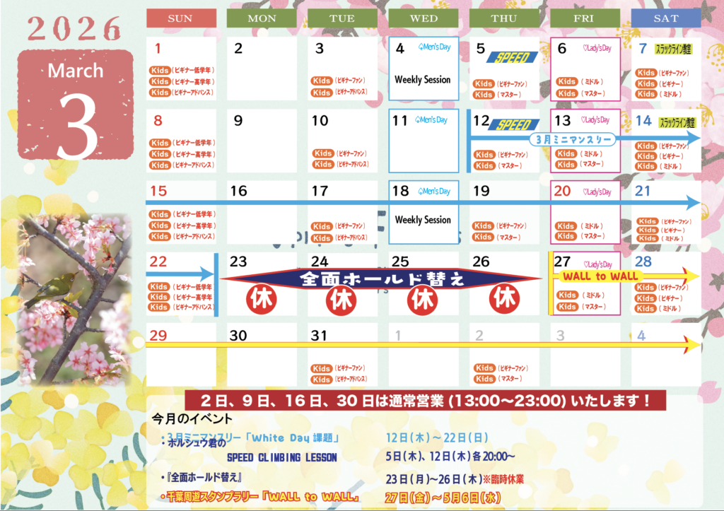 3月の営業のご案内